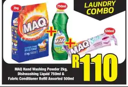| MAQ Hand Washing Powder 2kg, Dishwashing Liquid 750ml & Fabric Conditioner Refill Assorted 500ml | Boxer | | R 99,00 | | 27 June 2024 | 30 June 2024 |