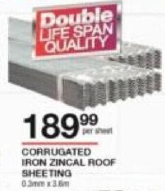 | Corrugated Iron Zincal Roof Sheeting | Build It | R 169,99 | 23 November 2023 | 23 December 2023 | |||