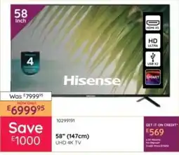 Bradlows Hisense 58" 147cm UHD 4K TV offer