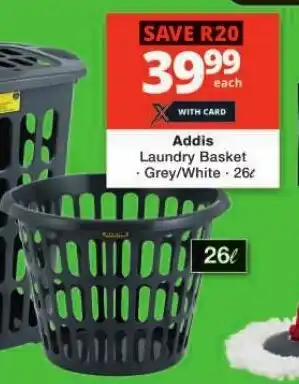 | Addis Laundry Basket 26L | Checkers | R 39,99 | 27 June 2022 | 03 July 2022 | |||