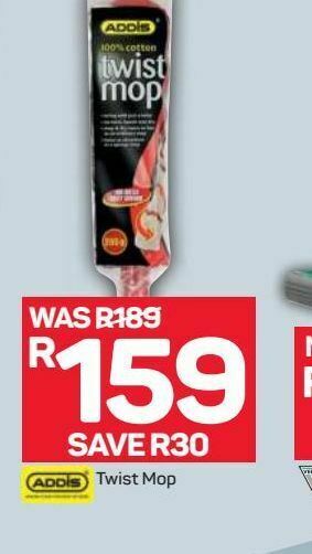 Pick n Pay ADDIS Twist Mop offerADDIS Twist MopPick n PayR 169,99SAVE R3022 September 202308 October 2023