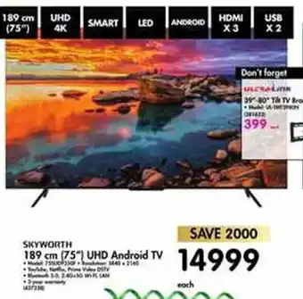| Skyworth - 75" Smart UHD Android TV | Makro | R 15 999,00 | 01 August 2021 | 16 August 2021 | |||
