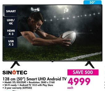 | Sinotec - 128cm (50") Smart UHD Android TV | Makro | R 6 399,00 | 01 February 2022 | 07 February 2022 | |||