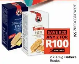 | 1 | Bakers Rusks 2 x 450 g | Checkers | R 120,00 | R 100,00 | Save R20 | 19 January 2026 | 08 February 2026 | View offer | |