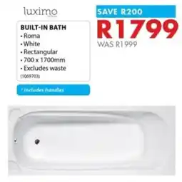 | Luximo built-in bath | Chamberlain | R 1 999,00 | R 1 799,00 | Save R200 | 20 November 2025 | 04 January 2026 | |