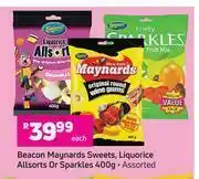 | Beacon liquorice allsorted 150g or maynards sweets 125g- for any 2 | Game | R 34,00 | 24 August 2022 | 06 September 2022 | |||