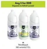 | m Thin Bleach (All variants) 1.5 L | Makro | R 89,00 | 19 February 2024 | 28 April 2024 | |||