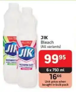 | Jik clean up multi purpose bleach (all variants)-for 2 x 1.5l | Makro | R 135,00 | 02 October 2023 | 28 January 2024 | |||