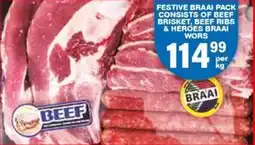 Giant Hyper Festive braai pack consists of beef brisket, beef ribs & heroes braai wors offer