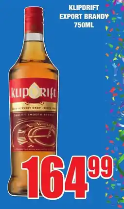 | KLIPDRIFT EXPORT BRANDY 750ML | Boxer Liquors | R 164,99 | 08 July 2024 | 21 July 2024 | |||