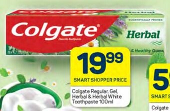 | Colgate Regular, Gel, Herbal or Herbal Whitening Toothpaste 100ml Each | Pick n Pay | R 21,99 | SAVE R8 | 24 July 2024 | 06 August 2024 | ||