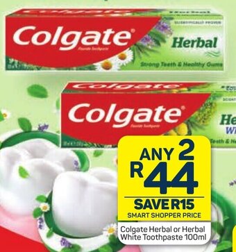 | Colgate Herbal or Herbal White Toothpaste 100ml | Pick n Pay | R 44,00 | Save R15 | 25 September 2023 | 08 October 2023 | ||