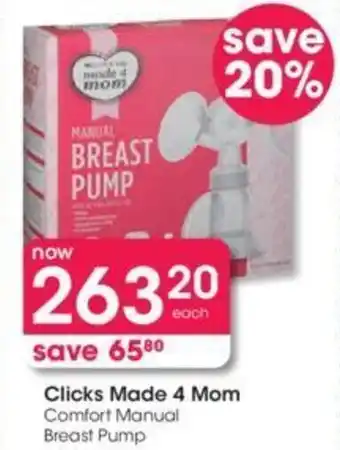 | Clicks Made for Mom Comfort Manual Breast Pump | Clicks | R 263,20 | 21 July 2022 | 08 August 2022 | |||