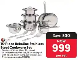 | 7 | 15-Piece Stainless Steel Cookware Set | Game | R 799,00 | 30 December 2025 | 19 January 2026 | View offer | |||