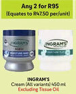 | 2 | ![]() | Ingram's Cream 2 x 450 ml | Makro | R 95,00 | 27 January 2026 | 28 April 2026 | View offer | ||