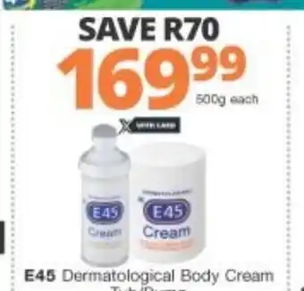 | E45 Dermatological Body Cream Pump/Tup 500g | Checkers Liquor Shop | R 189,99 | 16 March 2022 | 19 March 2022 | |||