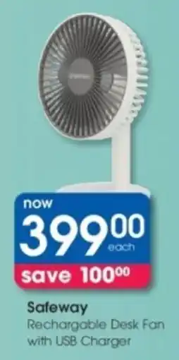 Clicks Safeway Rechargable Desk Fan with USB Charger offer