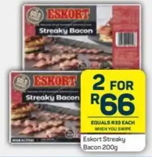 | Eskort Shoulder, Diced or Round Cut Bacon 200g | Pick n Pay | R 99,00 | 22 May 2025 | 08 June 2025 | |||