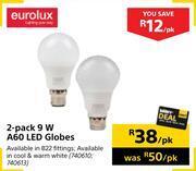 | Eurolux 2 Pack 9W A60 LED Globes-Per Pack | Builders Warehouse | R 29,00 | 24 June 2021 | 01 July 2021 | |||