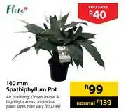 | Flora 140mm spathiphyllum pot | Builders Warehouse | R 99,00 | 19 September 2023 | 23 October 2023 | |||