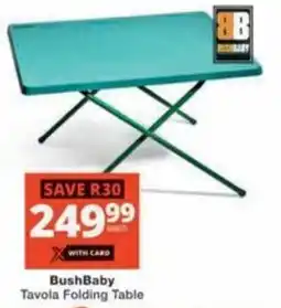 3Checkers BushBaby Tavola Folding Table offerBushBaby Tavola Folding TableCheckersR 279,99R 249,99Save R3029 December 202504 January 2026 View offer