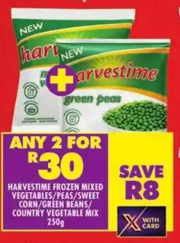 Shoprite Harvestime frozen mixed vegetables/ peas/ sweet corn/ green beans/ country vegetable mix offer