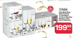 Pick n Pay Pauline Crystalline White Wine, Red Wine or Champagne or Stemless Glasses Plus 2 FREE offer