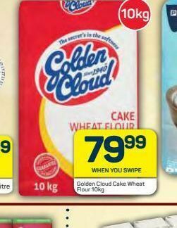 | Golden Cloud Cake Wheat Flour 10 kg | Pick n Pay | R 640,00 | SAVE R209 | 13 November 2023 | 24 December 2023 | ||