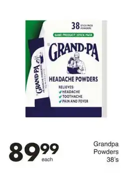 | Grandpa Powders 38's | Save | R 56,99 | 15 April 2021 | 25 April 2021 |