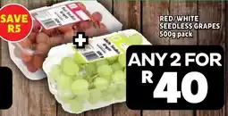 Checkers Class 1 Black/ Red/ White Seedless/ Red Globe Grapes offerClass 1 Black/ Red/ White Seedless/ Red Globe Grapes 2 x 500 gCheckersBuy any 2 & Save R1029 December 202504 January 2026
