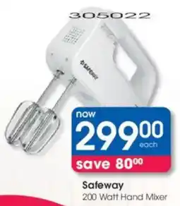 2Clicks Safeway 200 Watt Hand Mixer offerSafeway 200 Watt Hand MixerClicksR 379,00R 299,00Save 8012 January 202621 January 2026 View offer