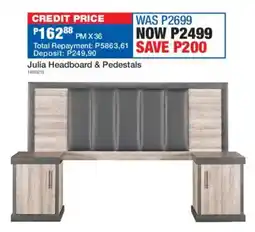 | 1 | Julia Headboard & Pedestals | OK Furniture | R 2 699,00 | R 2 499,00 | Save R200 | 27 December 2025 | 18 January 2026 | View offer | |