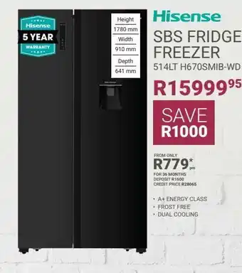 Bradlows Hisense sbs fridge freezer 51 4lt h670smib-wd offerHisense sbs fridge freezer 51 4lt h670smib-wdBradlowsR 15 999,9504 July 202207 August 2022
