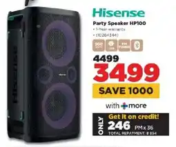 HiFi Corp Hisense Party Speaker HP100 offerHisense Party Speaker HP100HiFi CorpR 4 499,00R 3 499,00Save 100029 December 202503 January 2026