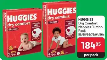 | HUGGIES Dry Comfort Nappies Jumbo Pack | Makro | R 179,95 | 07 November 2024 | 20 November 2024 | |||