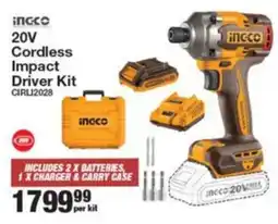 1Musica Ingco 20V Cordless Impact Driver Kit offerIngco 20V Cordless Impact Driver KitMusicaR 1 799,9909 December 202531 December 2025 View offer