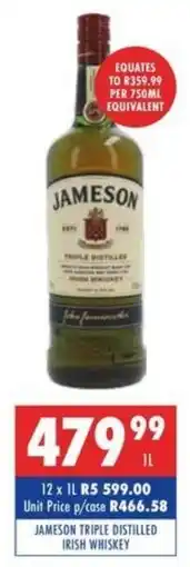Shoprite Liquor Jameson triple distilled irish whiskey offerJameson triple distilled irish whiskey 750 mlShoprite LiquorR 349,9915 December 202528 December 2025