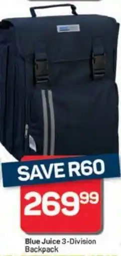 | Blue Juice 3-Division Backpack | Pick n Pay Hypermarket | R 269,99 | Save R60 | 27 December 2024 | 26 January 2025 | ||