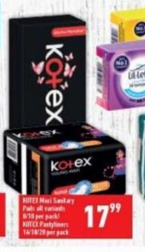 | KOTEX MAXI PADS 8/10 per pack/ PANTYLINERS 16/18 per pack | Shoprite | R 16,99 | 18 March 2024 | 07 April 2024 | |||