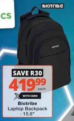 | 7 | Biotribe Laptop Backpack | Checkers | R 419,99 | 29 December 2025 | 08 February 2026 | View offer | |||
