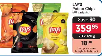 | LAY'S Potato Chips (All variants) 20 x 120 g | Makro | R 349,00 | 20 July 2023 | 27 August 2023 | |||