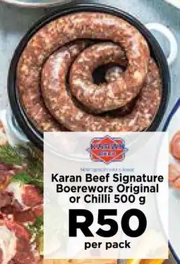 | Karan Beef Signature Boerewors Original or Chilli 500 g | Food Lover's Market | R 50,00 | 19 August 2024 | 25 August 2024 | |||