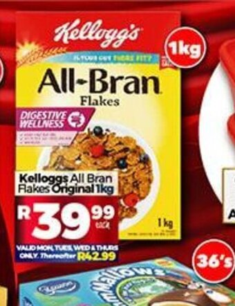 | Kelloggs All Bran Flakes Original 1kg | Take 'n Pay | | R 59,99 | | 31 May 2022 | 05 June 2022 |