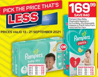 | Pampers New Baby Disposable Nappies or Active Baby-Dry Disposable Nappies or Pants Value Pack | Pick n Pay | R 169,99 | 13 September 2021 | 21 September 2021 |