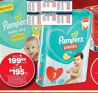 | Pampers New or Active Baby Jumbo Pack or Premium Care Value Pack Disposable Nappies or Pants Assorted Per Pack | Pick n Pay | R 229,99 | Save R105 | 25 February 2025 | 02 March 2025 | ||