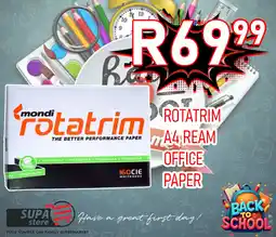 Supa Store Mondi Rotatrim A4 Ream Office Paper offerMondi Rotatrim A4 Ream Office PaperSupa StoreR 69,9909 January 202601 March 2026