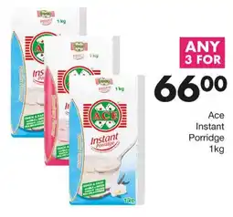 | 2 | Ace Instant Porridge 3 x 1 kg | Save | R 66,00 | 15 January 2026 | 25 January 2026 | View offer | |||