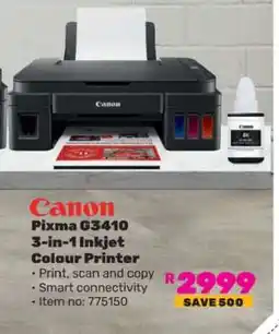 | Canon Pixma G3410 3 In 1 Multifunction Inkjet Colour Printer | Game | R 2 999,00 | 24 March 2024 | 28 April 2024 | |||