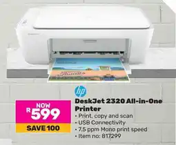 | Desk Jet 2320 3-in-1 Printer | Game | R 749,00 | 14 December 2022 | 24 December 2022 | |||