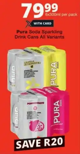 | Pura Soda Sparkling Drink Cans All Variants 6 x 300 ml | Checkers | R 79,99 | Save R20 | 08 December 2025 | 28 December 2025 | ||